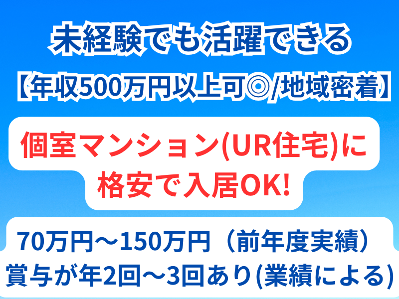 未経験でも活躍できる【年収500万円以上可◎/地域密着】/ 個室マンション完備