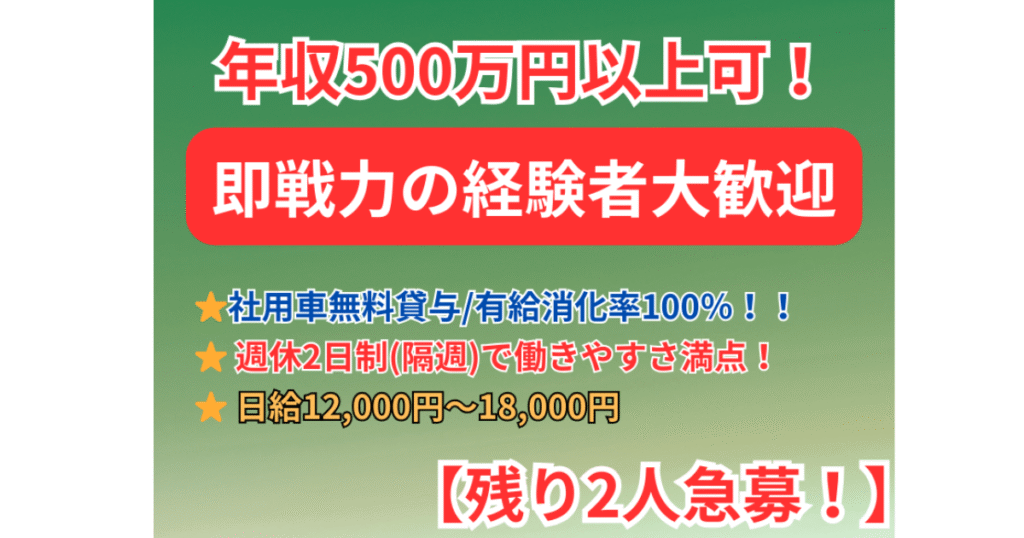 - 賞与や現場毎の手当あり!有給消化率100%